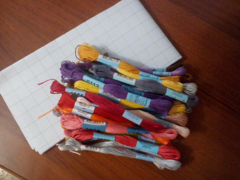 Канву взяла в этот раз аппретированную. Посмотрю как она. Каунт 14. Думаю не велик для игрушек? Ниточки гамма. Позже на бобинки их перемотаю для удобства.