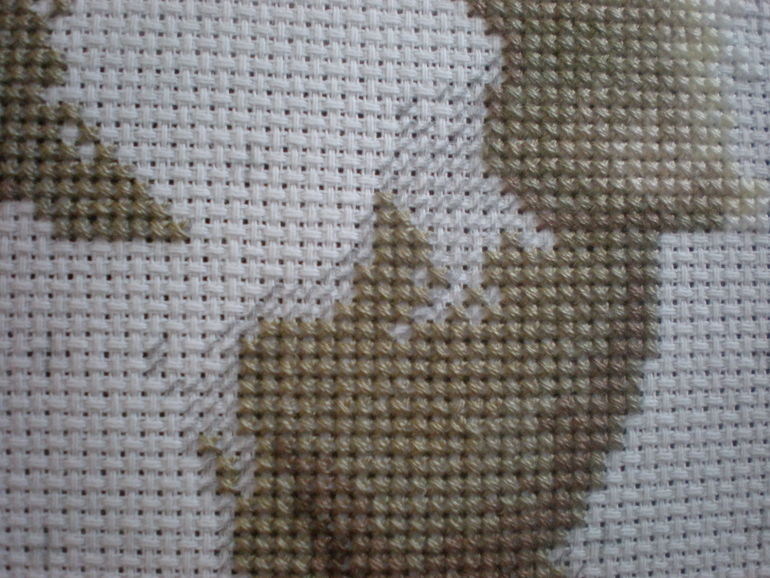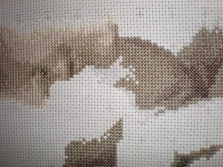 Простой карандаш под крестиком не заметен (можно рисовать не полный крест, а полу крест) и красота картины остаётся не испорченной. Естественно, участки со светлыми нитками или совсем белыми, я карандашом не отмечаю.