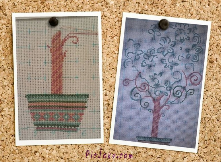 У меня деревце начало по чуть-чуть распускаться, но времени на вышивку как то совсем мало по вечерам.