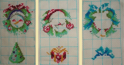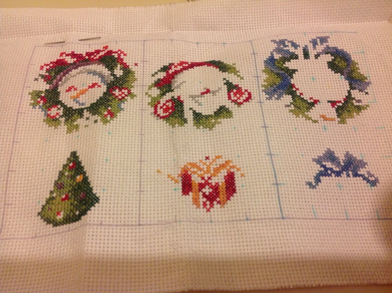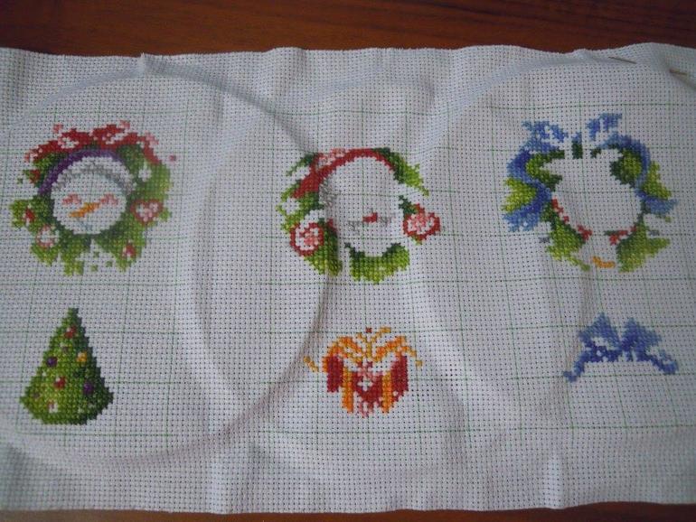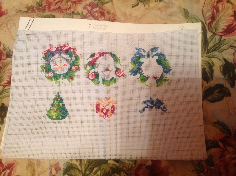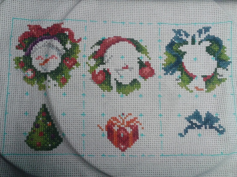 Получается как то мрачновато, особенно меня озадачили красные глаза у снеговика. Канва у меня бежевая, посмотрю как пойдет дальше, а то может распорю, да поменяю цвет...