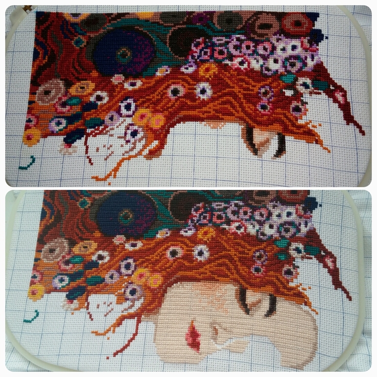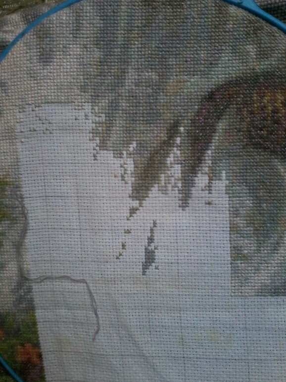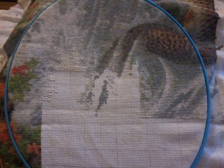 Какие все молодцы. У всех продвижение видно. Я тоже хорошо повышивала, на мой взгляд). Я довышивала прошлый лист, и принялась за новый, но уже повышивав пару часов, вспомнила, что фото этого фрагмента картины у меня нет. Сфотографировала... Вот что из этого вышло: