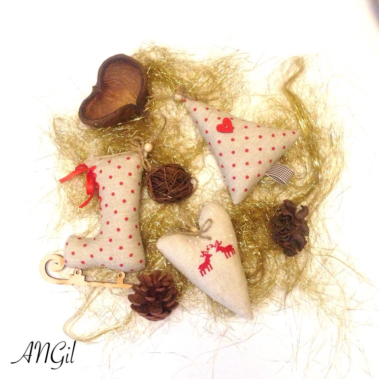 Девочки, вот и я появилась.Впринципе я ничего такого и не вышивала новогоднего.Вышила пару игрушек и сотрудница их сшила (мое то, что вышито - снежинка и олени)
