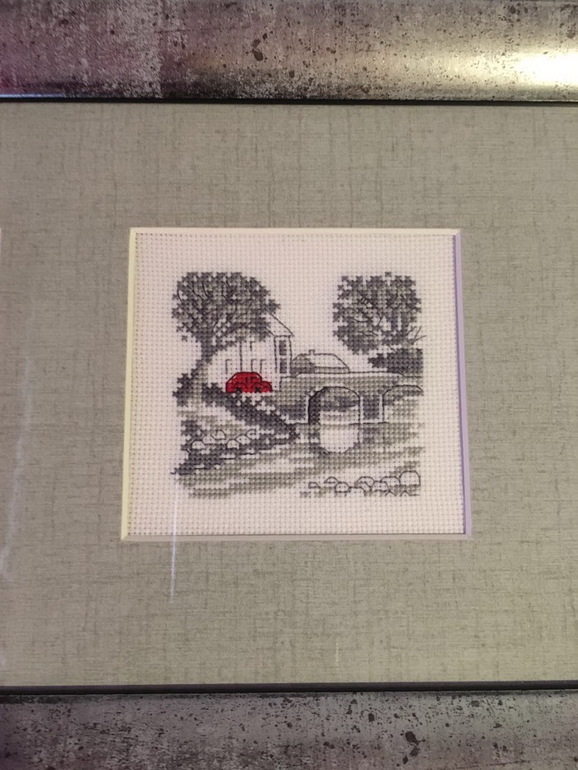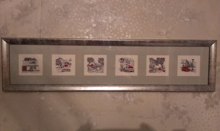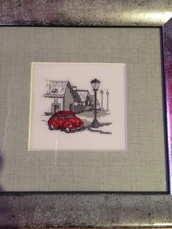 Вышивка крестомДобрый день всем! Вышила и оформила по заказу одному хорошему человеку для проверки срабатывания приметы всем известную вышивку "Путешествие красной машинки". Ждем результат! Добавила фотки поближе.