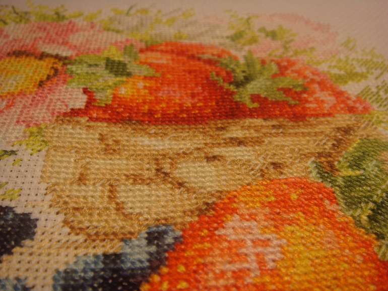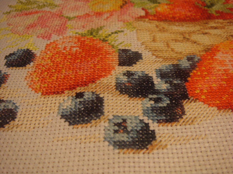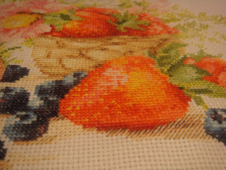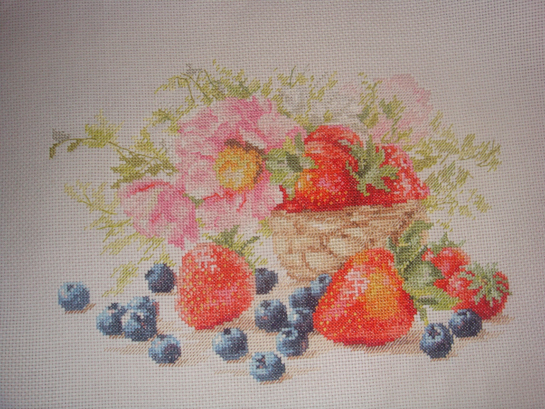 Вышивка крестомВышилась у меня вот такая Клубника от Алисы в подарок свекрови. Вышила за 2,5 недели. В принципе набор понравился, но канва очень уж жесткая, все пальцы исколола (( и фирма уж слишком намудрила со стежками, но результат шикарный ))
