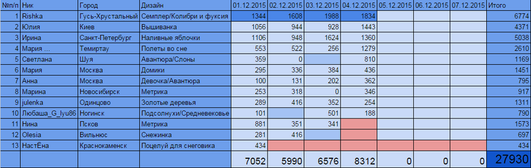 В этом отчёте уступлю пальму первенства кому-нибудь)) Беру выходной. Как и думала,сегодня к вышивке так и не прикоснулась и завтра до обеда тоже не получится повышивать.