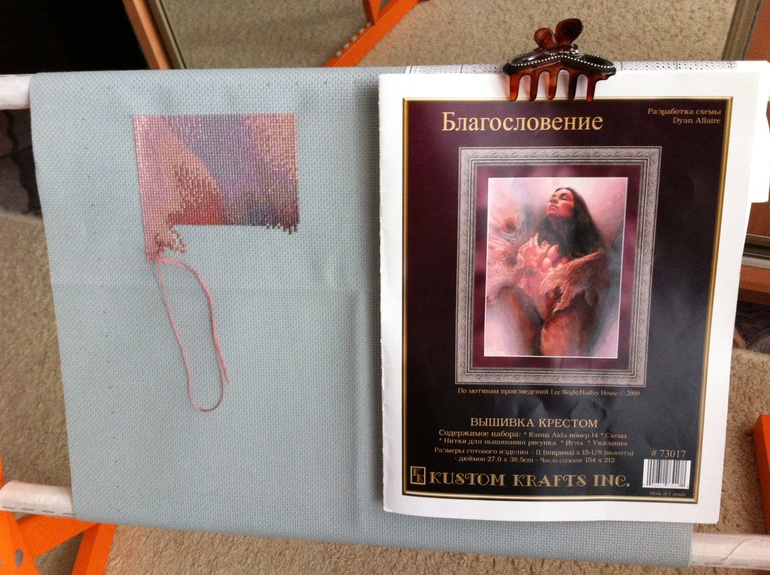 По тихоньку, но продвигаюсь)Хочу еще написать про сам набор.Вышиваю впервые Kustom Krafts, качеством очень довольна.И ниточки, и канва, и схема черно- белая(как я люблю) все мне нравится.Единственный минус- это много одиночных крестиков(Ну и хочется поскорее увидеть результат)