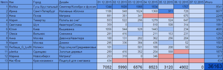 Юля, которая с Золотыми деревьями, я тебя отметила в табличке уже после её копирования, не пугайся красному прямоугольничку