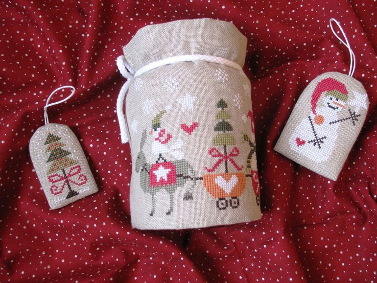 Лежала пару лет вышивка, все думала сделать из нее адвент-календарь , но не сложилось, зато получилось украсить баночку для еловых веток. Сами веточки украшу вышитыми подвесками, подкрашенными сосновыми шишками и бантиками из белого шнура.