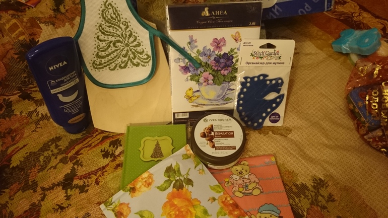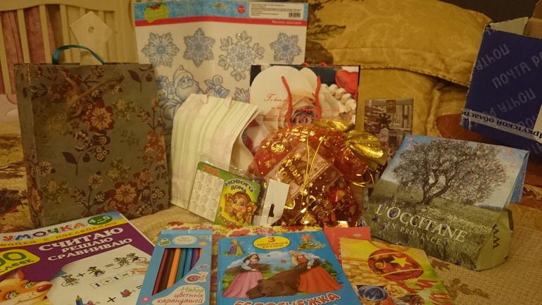 Обмен подаркамиВсем доброго времени суток!!! Ура, нас посетила новогодняя феечка, а ею оказалась Машуля_мамуля. Уведомление о посылочки пришло как раз тогда когда нужно было, настроение было совсем никакое, т.к. детей не миновал вирус, и вот уже дней шесть мы вызываем то скорою, то неотложку с врачами, сначала одному ребенку, а теперь еще и второму. В череде этих жутких дней я получила уведомление о посылочке, мне удалось вырвать минутку и забежать на почту. Выдали мне там довольно увесистую коробку, и каково же было мое удивление, когда я прочитала, что посылка прибыла к нам из Иркутска. Можно сказать, что мы получили подарочки от косвенно землячки. Почему косвенно, да потому, что мама у меня сибирячка, выросла недалеко от Иркутска. Ну разве это не новогоднее чудо! Но чудеса на этом не закончились, когда я открыла коробочку чего только я там не нашла, она была бездонна, я все доставала и доставала)))) Огромное Вам спасибо Мария за чудесные и душевные подарки. Вот общий вид посылочки, а остальное под катом)))))