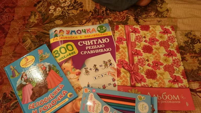 Сказки для дочки, альбомчик и карандашики, и наклеечки, будем рисовать, изучать и читать. Дочка в восторге)))