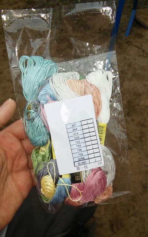 К слову о заказе: продавец нитки не перепутал, положил все номера, что я просила, плюс один моток в подарок. К ниткам прилагалась маленькая распечатка с указанными номерами. Нитки нескольких фирм (разные этикетки, на некоторых даже гордая надпись "маде ин франсе"), но примерно одинаковые по качеству. Чуть более пухлые и рыхлые, нежели оригинал, блестят хорошо. Заказ отслеживался по треку, правда, почему-то только 11 декабря посылка "зачекинилась" на почте Китая.