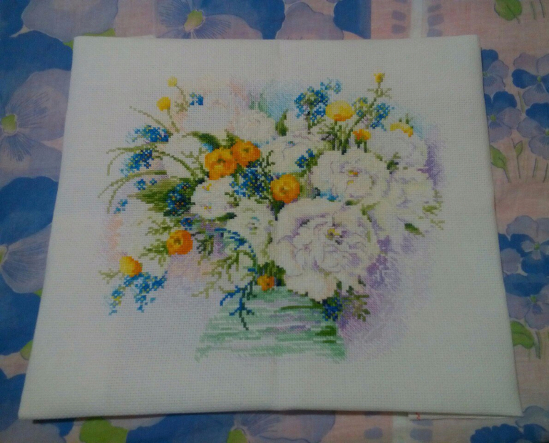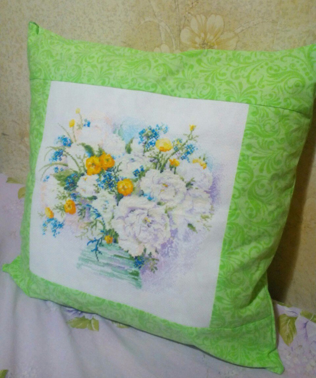 акварельные пионы от Риолис, хотелось оформить именно подушкой,т.к. есть планы вышить еще цветочки из этой серии