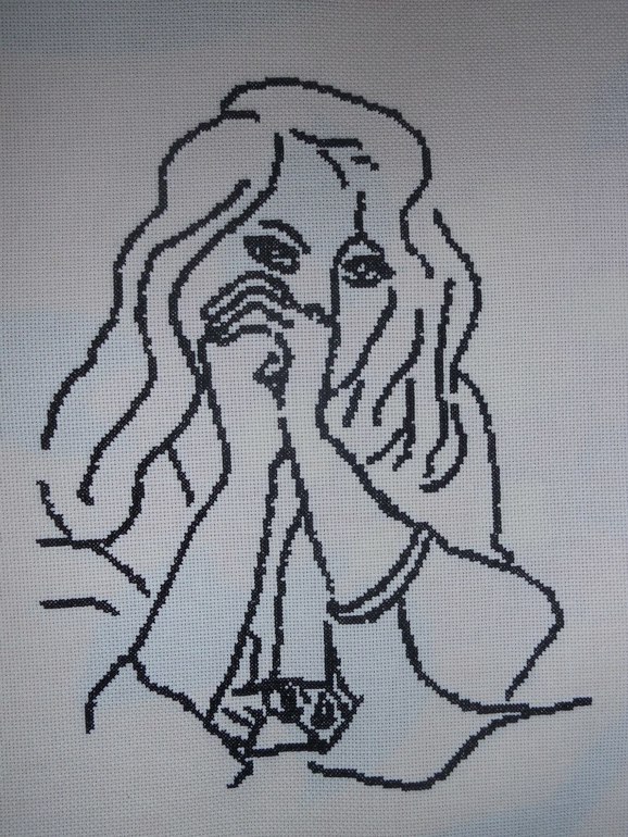 еще была вышита вот такая монохромная девушка по просьбе знакомых, чем-то она им понравилась)