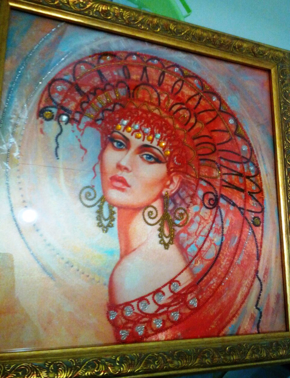 еще была частичная вышивка бисером от Новой Слободы, вот не смогла я устоять перед взглядом этой девушки))