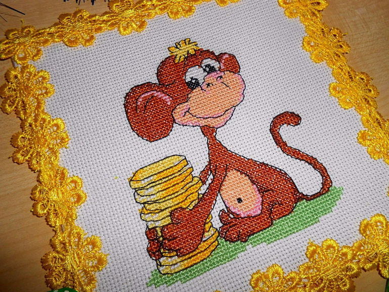 Вышивка крестомДо Нового года осталось совсем мало времени. Впереди год Обезьянки. И как обещают гороскопы, эта зверюшка будет покровительствовать всем творческим натурам. Ну как же нам, вышивальщицам, не приложить иголочку к созданию такого замечательного талисмана на весь год?))) Вот и я решила не сидеть, сложа руки, и перерыв схемы обезьянок в интернете, нашла ту, которая понравилась и стала особенной для меня.