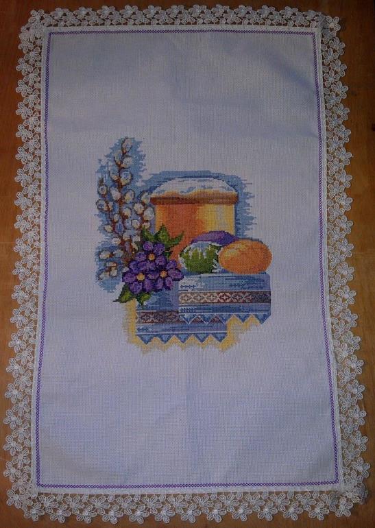 1. Пасхальная салфетка для мамы. (Для того что бы успеть вышить к празднику фотографировала результаты отшива каждый день и выкладывала в отдельный пост в дневнике. Благодаря такому самоконтролю вышила быстрее чем планировала).