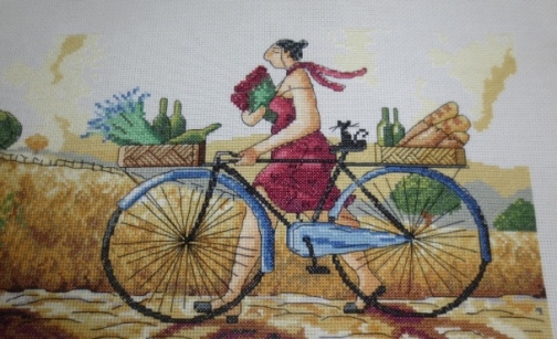 долго, особенно велосипед достал)) ..кстати, цветы на платье решила отшить не белыми нитками как надо, а черными.. чего-то так больше понравилось)