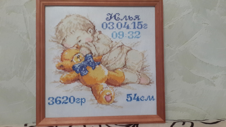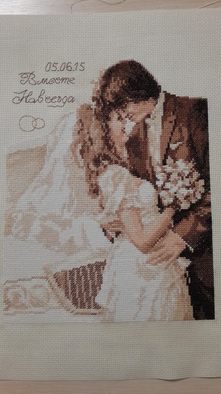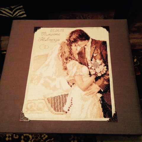 10. Вышила подруге метрику на свадьбу, из которой она потом сделала фото-альбом.