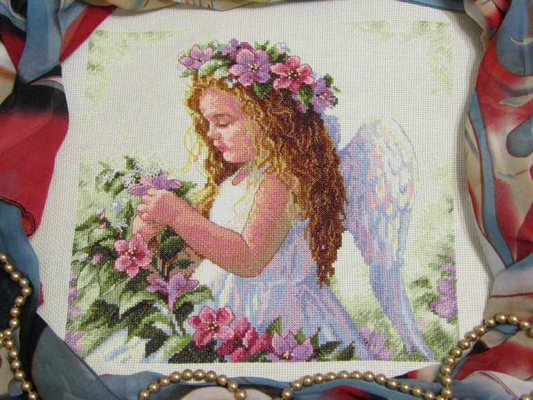 Вышивка крестомЗавершила я еще одного ангела. Дизайн всем известный, поэтому подробности писать не буду.