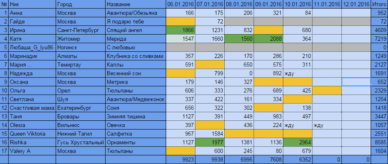 Лидером дня стала Rishka, вышив 2964 крестика (пока что рекорд нашего забега)