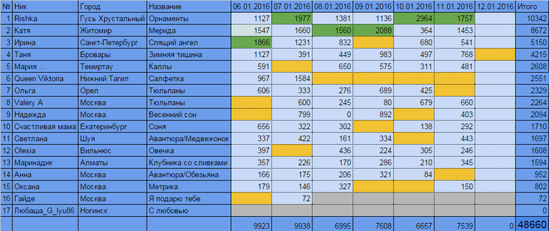Все девчата, большие молодцы! Все вчера отчитались.