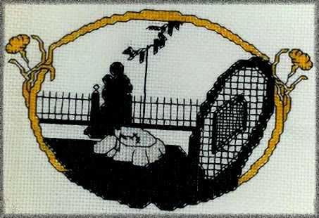 Но, вышивая ее, все время мучалась какой-то незавершенностью, что ли... Да еще и ассоциация почему-то пошла на роман любимого Мопассана "Жизнь"(не могу объяснить, почему!))) В общем, решила я на основе этой картинки, которую я про себя почему-то сразу окрестила "Ожидание"(тут пошла по киношному принципу: если в кадре вдруг на заднем плане появляется дверь - значит сейчас в нее кто-то войдет), сделать диптих - чтобы Она обязательно дождалась! Ну и вот, в общем, что в итоге получилось...