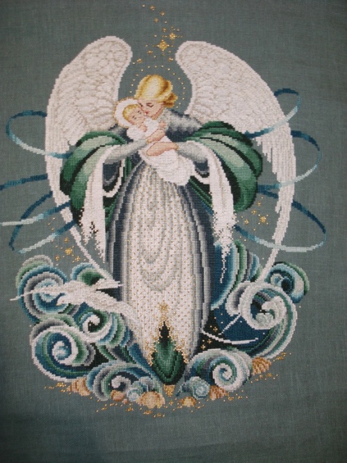 Мариночка просто ударница труда нашего совместника, вышила аж две большие работы! Ангел моря и цветочный ангел, они восхитительны!