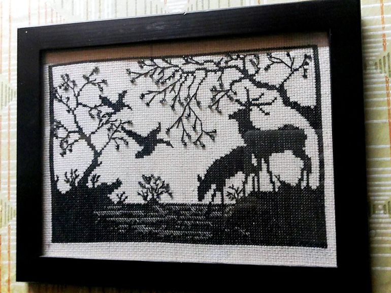 Красота! Шарм тоже в проекте, хочу вышить, а блэкворкнутых оленей вышивала, только они у меня были просто черные, но с добавлением бисера)))