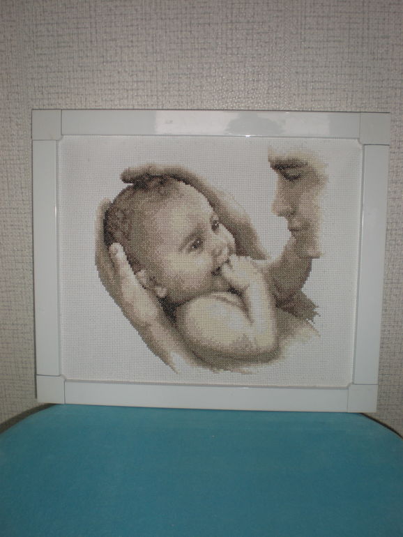 над оформлением пока размышляю. или оформить как уже имеющаяся картина малыша с мамой и повесить их вместе, или сделать оформление разным.