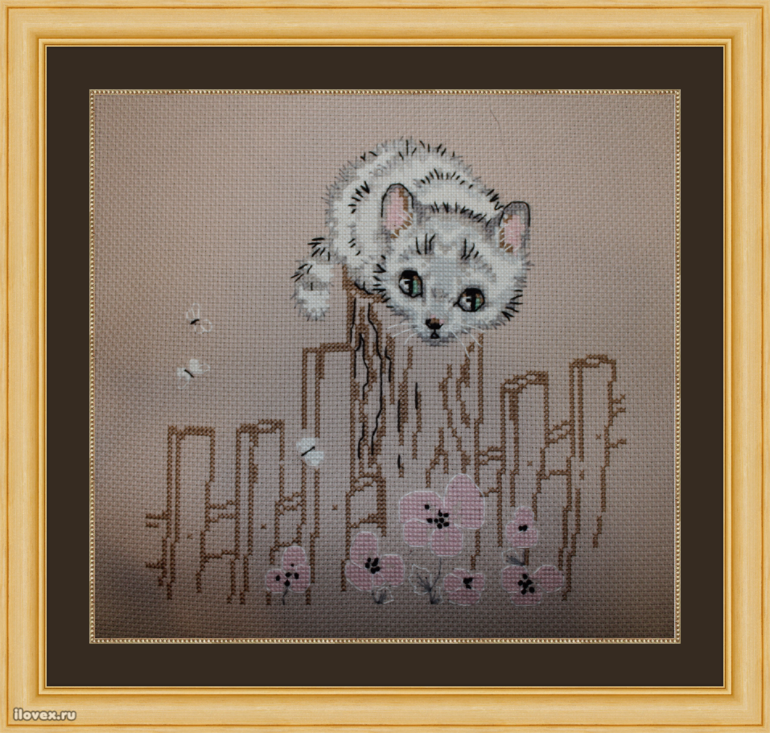 В ноябре вышивала "Ромашковый зонтик" от Новой Слободы. Работа выполнялась на канве с готовым фоном. Дней 20 она у меня заняла, усы все забываю пришить!