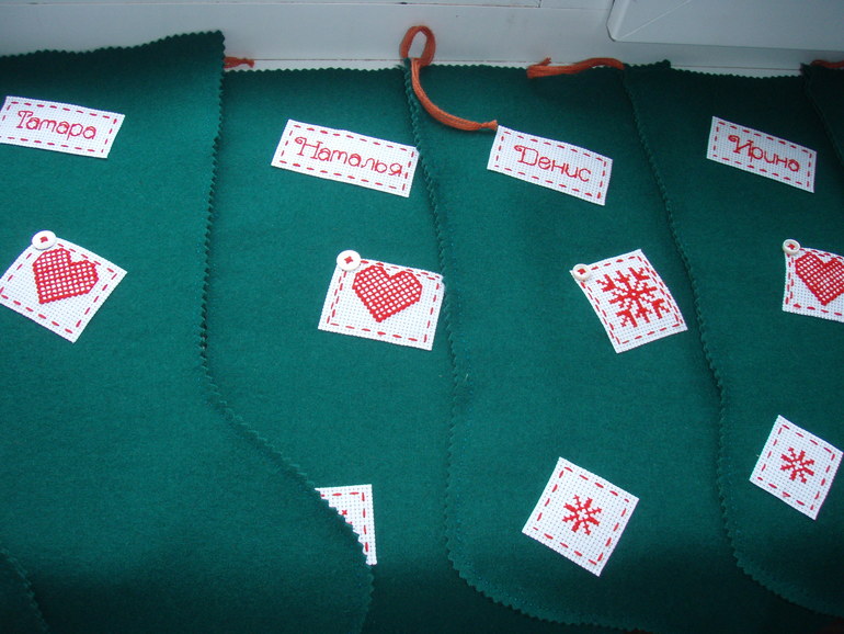 Вышивка крестомКак говорится, готовь сани летом... Поэтому, пока остались запал и навык, а также не разбежались по хомячьей норме материалы, я пошила вторую волну новогодних подподарочных носочков. 11 штук) 9 - на имеющихся членов семьи + 2 про запас, пока безымянных. Обновляю, так сказать, носочный парк.
