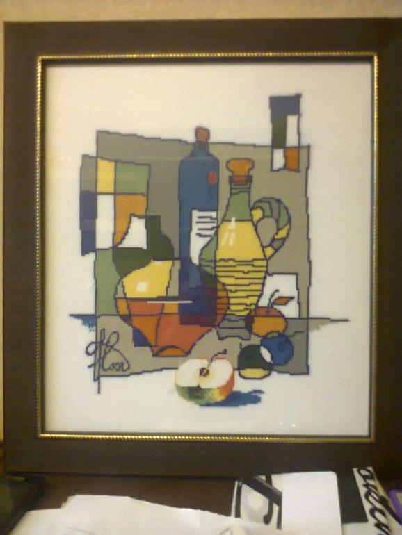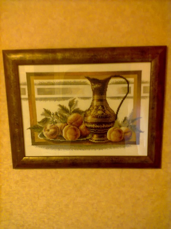 Сфотографировать лучше не получится т.к 5 из 7 картин подарены подругам.Дома висят волки и кувшин с персиками .
