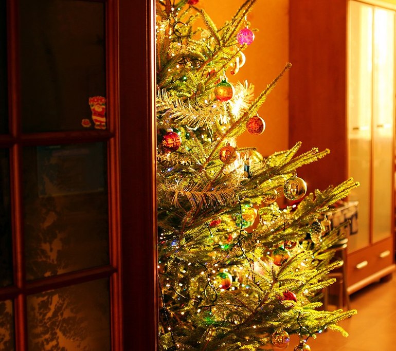Еще эта елка очень мила тем, что она очень похожа на нашу живую елку, которую в этом году мы принесли из леса сами. Она такая же высокая, пушистая и стоит до сих пор, потому что и не думает осыпаться)