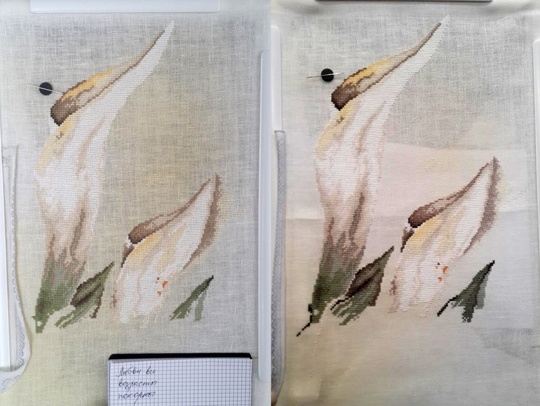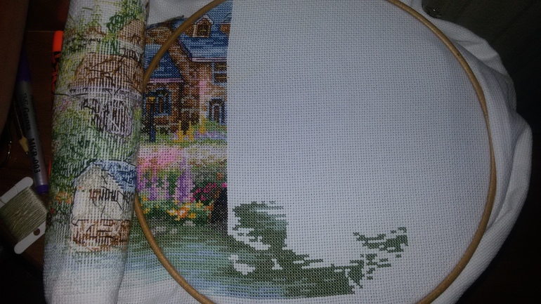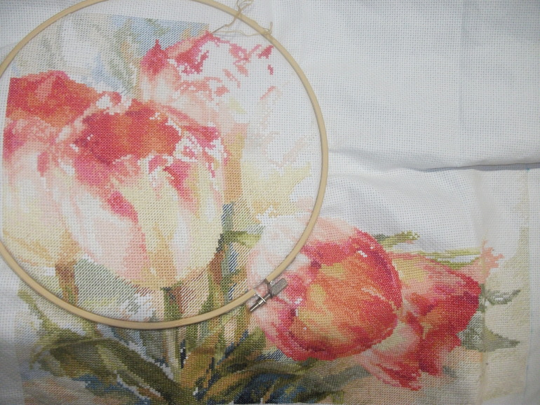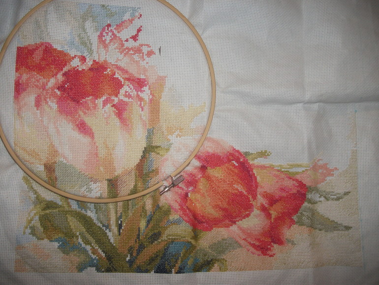 Всем привет! Мне сегодня удалось повышивать чуть-чуть. Итог: 312 крестиков. Закончила авантюрку (там немного совсем оставалось), и каллы поковыряла.
