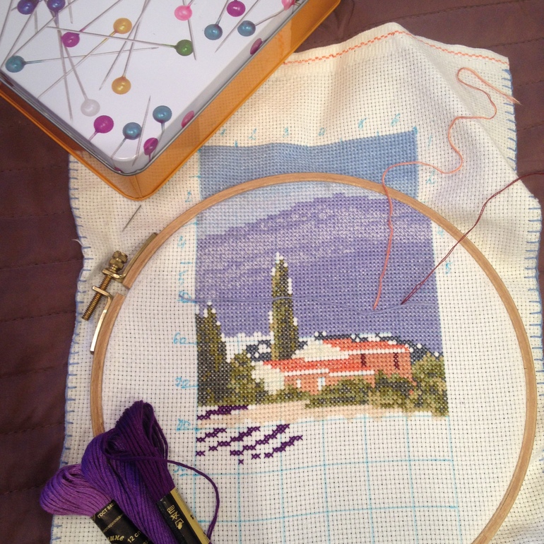 Вышивальные процессыДоброго всем утречка! Хочу рассказать о своей текущей работе и о вышивальных планах. Давненько я не вышивала, где то полгода. И вот опять ручки потянулись к вышивке. Она для меня как медитация. Летом начала вышивать «Лавандовое поле» из интернациональных панелек Клейтона, а потом забросила.