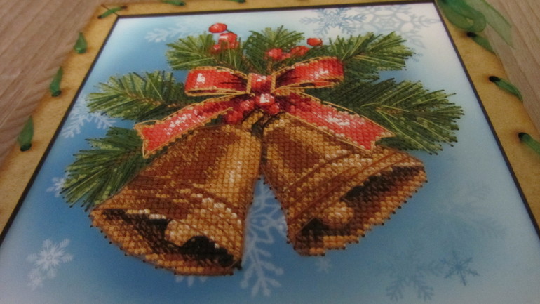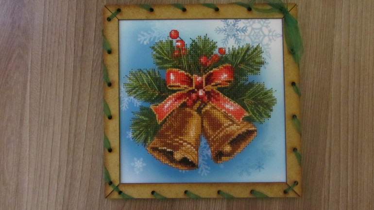 Мне впервые удалось не зачеркивать схему, хотя в колокольчиках очень хотелось) И вот что интересно, наборы одной фирмы, укомплектованы рамкой и лентой для ее скрепления, но только в колокольчиках была предусмотрена большая игла для ленты. Я даже подумала, что в остальных просто не доложили, нет, не предусмотрено в комплектации.