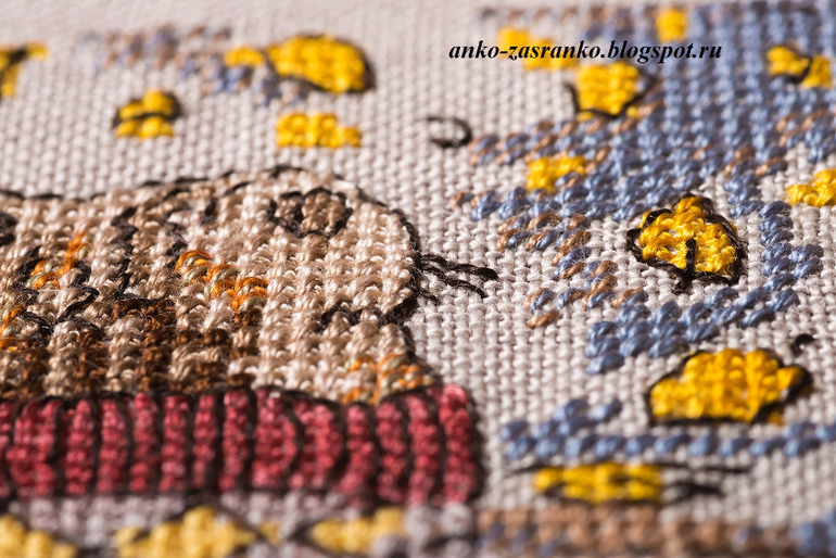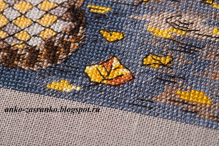 Рыжие полосы на голове заменила блендом с хвоста, в ушки добавила темный цвет (внутри ушка), и постаралась уложиться в рамках бэка, используя петиты, 3/4 и 1/4 креста. Получилось очень аккуратно :) Ну вот как-то не люблю я, когда крестики за бэк вылезают. Это в отношении кота.