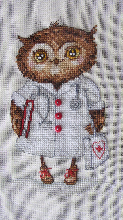 Вышивка крестомУвидела я эту совушку - доктора и пропала) Набор Неокрафт, мулине Finca, канва Zweigart, крестики, полукрест и бэк. Мой перрвый опыт вышивания на равномерке, я в полном восторге от крестиков, от их воздушности и легкости работы. Нитки совершенно не путались и ложились ровненько.