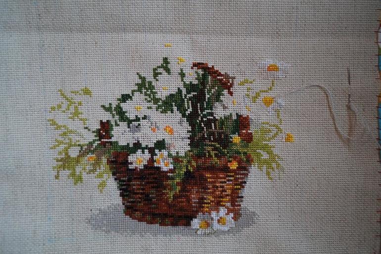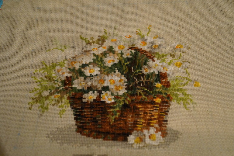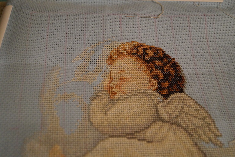 Ангелок наверное уже скоро будет на заставке в законченных работах. И ромашки шустро распускаются