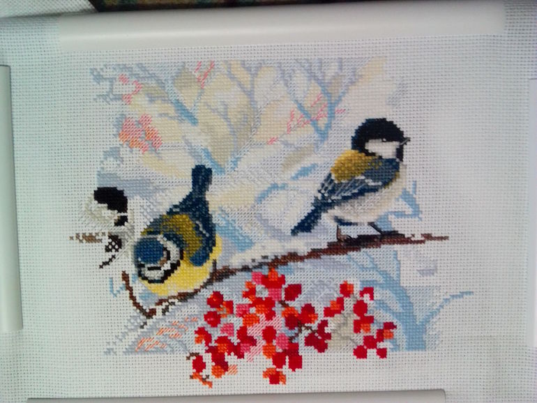 Всем доброго денечка!!!!Повышивалось немного на этой неделе , правда дошло дело до рябинки, показываю что было и стало. У нас снова пошел снег, а думалось , что уже весна))