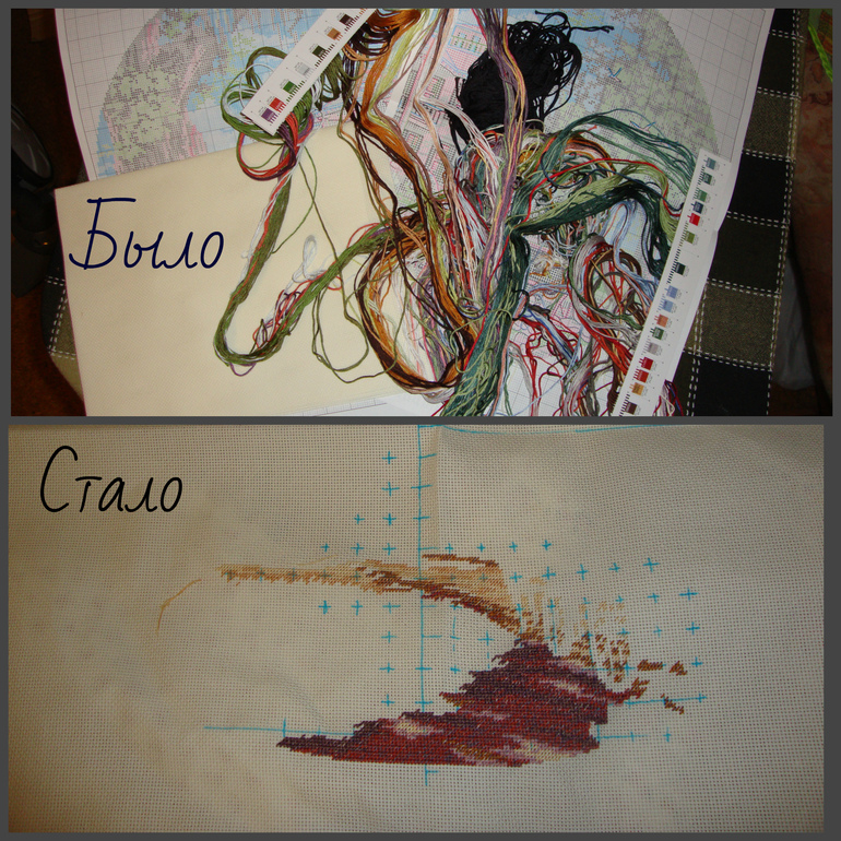 Привет,девченки! Вот что у меня получилось за неделю, пол картины готово было