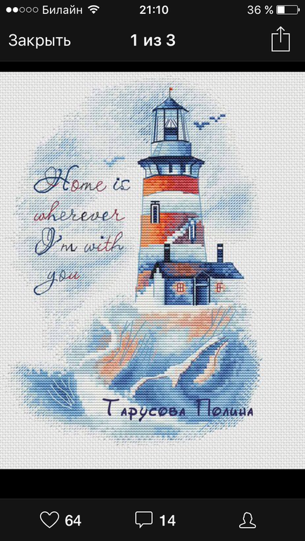 Я сейчас вот такой димовский маяк вышиваю, но по моему его сняли с производства((( я сама за ним долго гонялась, чтобы купить по более или менее приемлемой цене