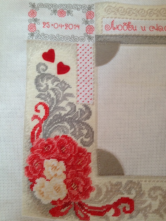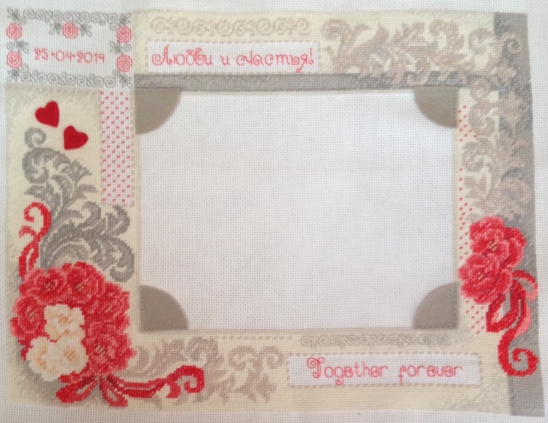 Вышивка крестомВышивалась в подарок, моя подруга живет за 1000 км от меня и попасть к ней на свадьбу я не смогла, так как дочка была совсем крохой, поэтому на первую годовщину свадьбу решила сделать ей такой подарочек )