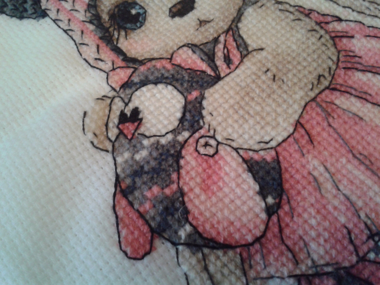 Девочка-зайчонка : Размер схемы 92х62 крестика, 16 основных цветов и бленды из них (палитра ДМС), крест, полукрест, бекстич