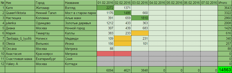 Лидер дня - новичок в нашей игре, Настюшка. Умница, так держать.