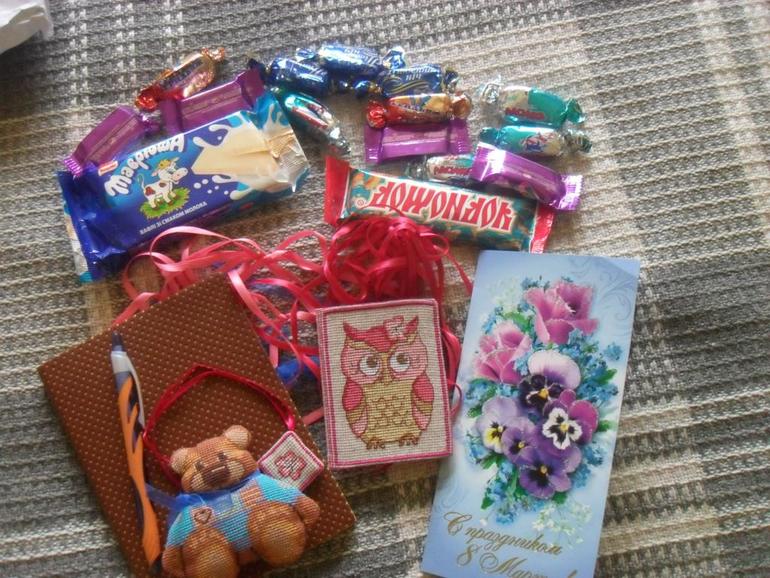 Обмен подаркамиСегодня забрали с сыном на почте долгожданную посылку от Танечки из такой далекой и теперь такой близкой для меня Одессы!! Сразу хочу сказать,что Танюша открытый,добрый,отзывчивый и очень светлый человек!! я сама предложила ей обмен к 8 марта в канун Нового года и она сразу согласилась!!! Праздник у меня продолжается!! Ура!!
