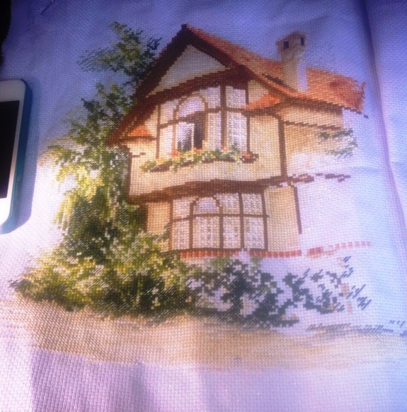 Вышивальные процессыПотихоньку продвигает "строительство" моего дома мечты :) не могу не поделиться. Очень мне нравится процесс (после темной канвы Викторианского шарма, вышивать одно удовольствие)и результат радует.