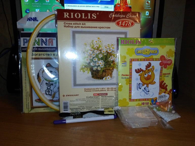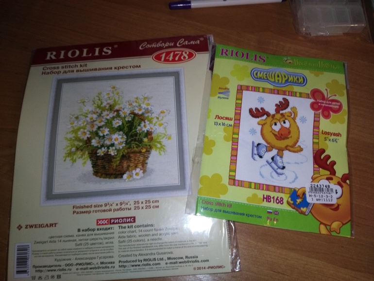 2 новых набора от Риолис: "Русские ромашки" и "Лосяш". Наборы совершенно новые, даже не вскрывались. В ромашках используется шерсть, несколько техник исполнения. Лосяш с мулине![]()