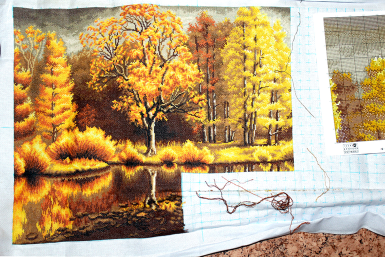 Осталось сбоку два целых прямоугольника и по половинке) Если в ширину, то полтора. и внизу еще неполные. Но там тоже меньше цветов, думаю быстрее пойдет) Спасибки!
