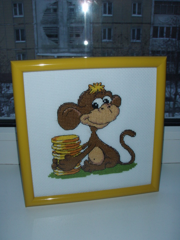 Вышивка крестомУвидела у подружки фото отшитой работы. Очень понравилась яркая обезьянка, тем более, что я ежегодно вышиваю символ года - что-то такое весёленько-мультяшное;) В общем, когда в магазине увидела наборчик, мимо пройти не сумела.